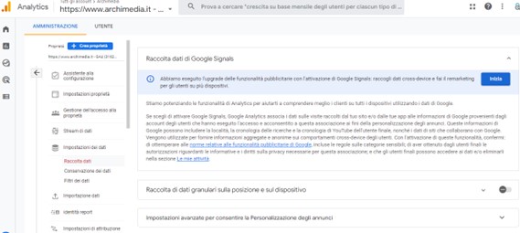 Discorso diverso per Google Signals perché questa funzione può essere attivata da pannello di configurazione e quindi sta a chi gestisce l’account di Google Analytics accertarsi che sia disattivata.