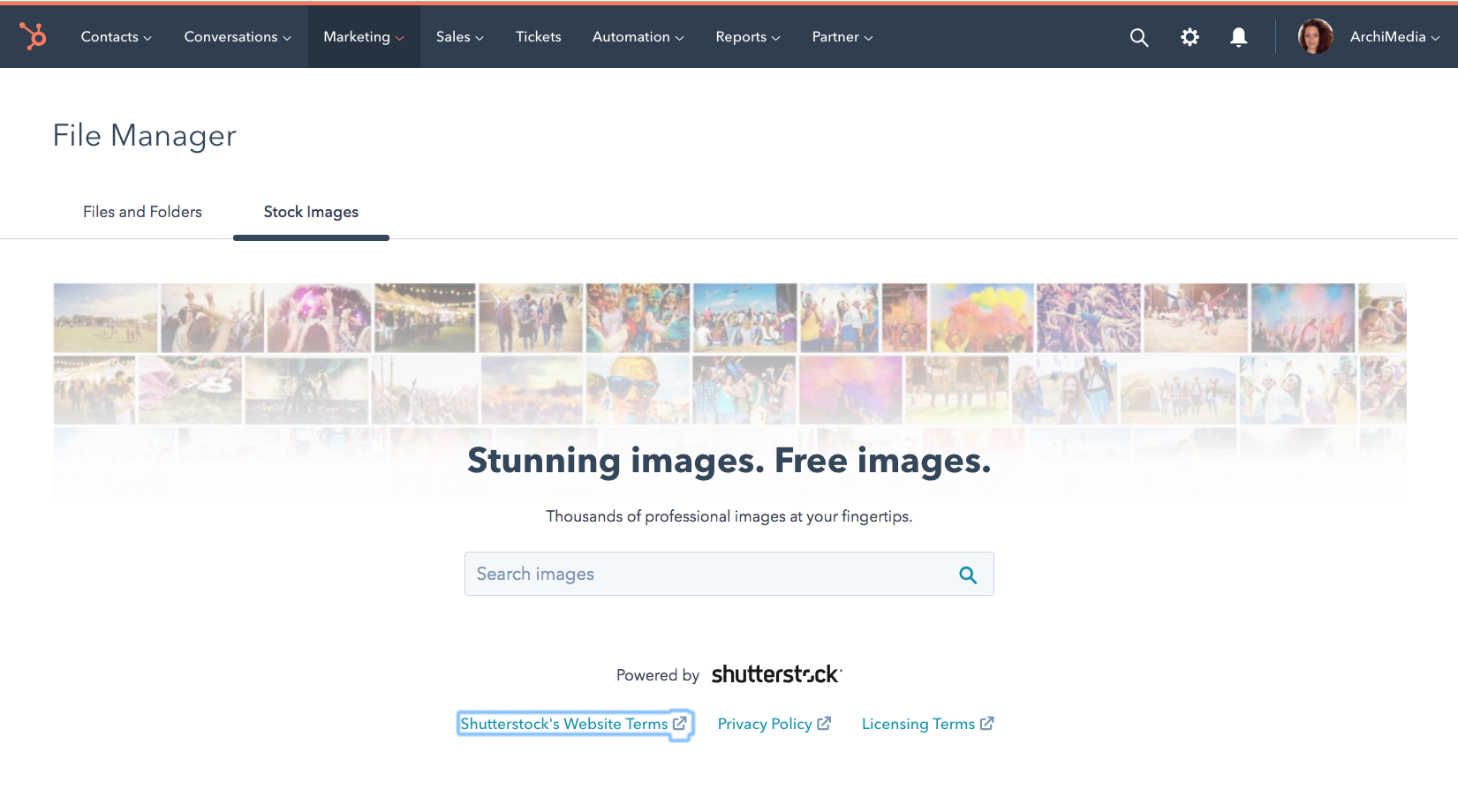 Nello Stock images di Hubspot hai a disposizione un archivio di centinaia di foto gratuite di alta qualità, fornite da shutterstock. Molto comode da utilizzare nei blog post e nel sito.