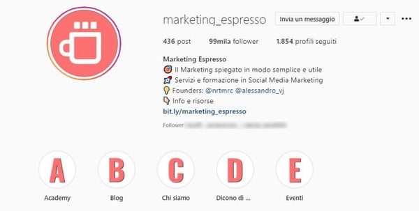 Ecco, per esempio, come hanno deciso di mettere in evidenza le loro stories Marketing Espresso e il ristorante stellato Peter Brunel: